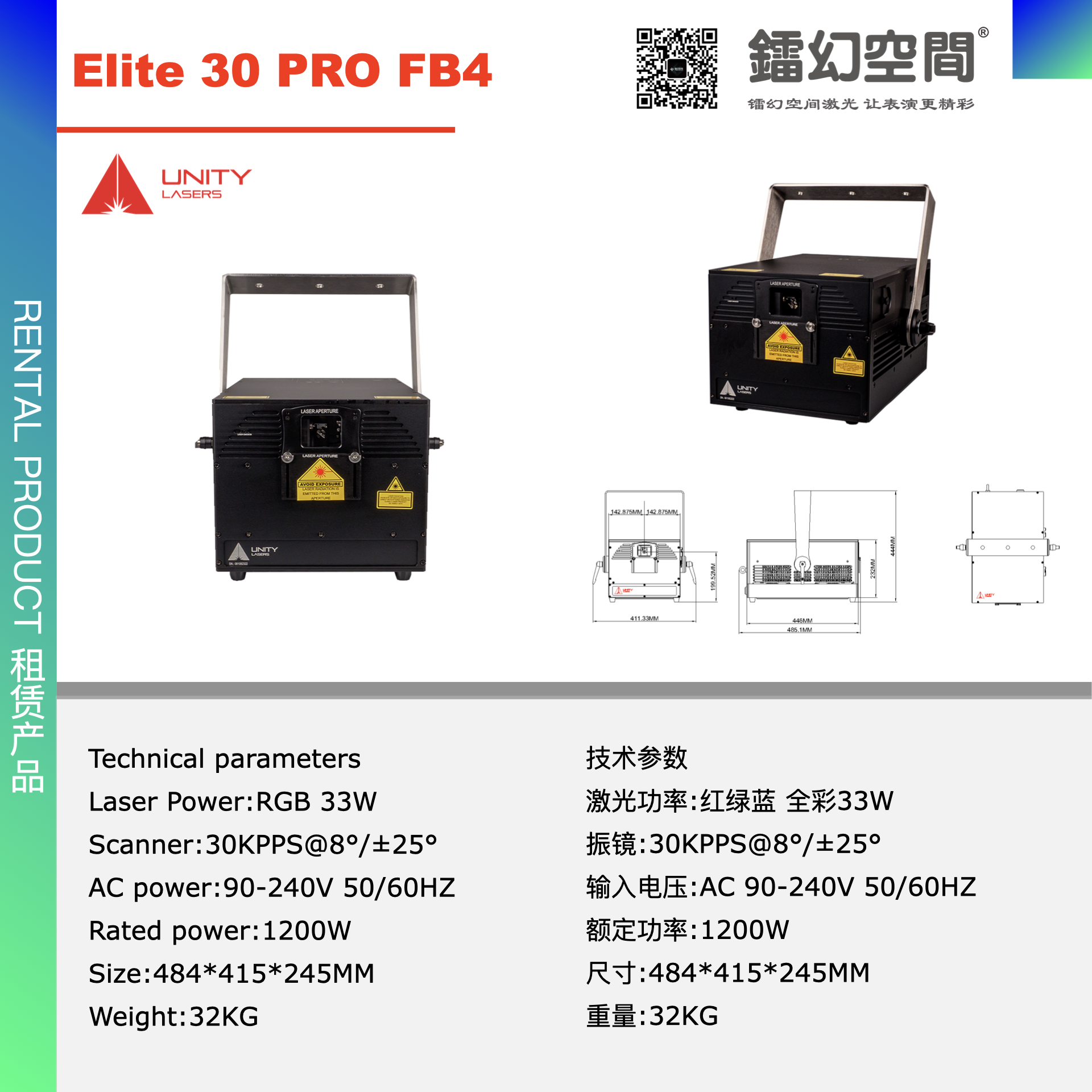镭幻空间提供高品质彩色激光系列用于租赁。有UNITY LASERS ELITE 30PRO FB4(防水款),LS VOLUX 40W RGB RB4(防水款)RGB C60 FB4(防水款) RGBS30S FB4(防水款),RGB S24 FB4,RGB S14 FB4,RGB C10(DMX),RGB S6(DMX)等